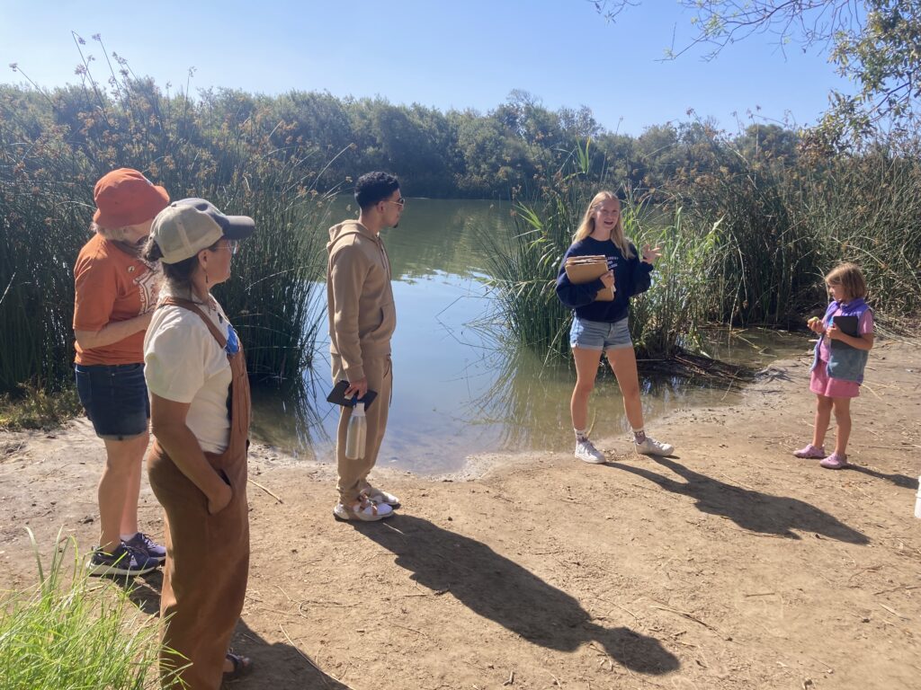 No time to waste as we jumped back into the cars filled with budding and experienced river advocates chattering and making our way to the second stop: the Salinas River Bridge on Monte Road. I didn’t want to take my eyes off the incredible width of the River here, but I filled my river diary with notes from the presentation on water quality testing and caring for the River by Erin Lawrence and Natalie Herendeen of Monterey Waterkeeper. Dissolved oxygen, pH, temperature and how they are important to supporting life in the River all became clear in my mind and participants enjoyed trying out the test equipment. Beavers might have come close to stealing the show for the day however, as Audrey’s storytelling of the SLO Beaver Brigade and beavers captured our imaginations.